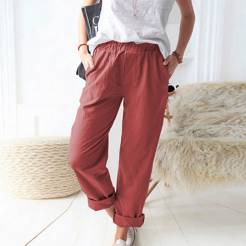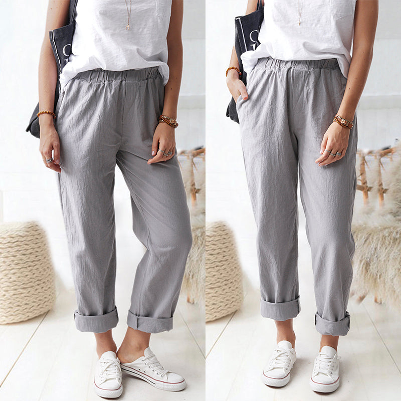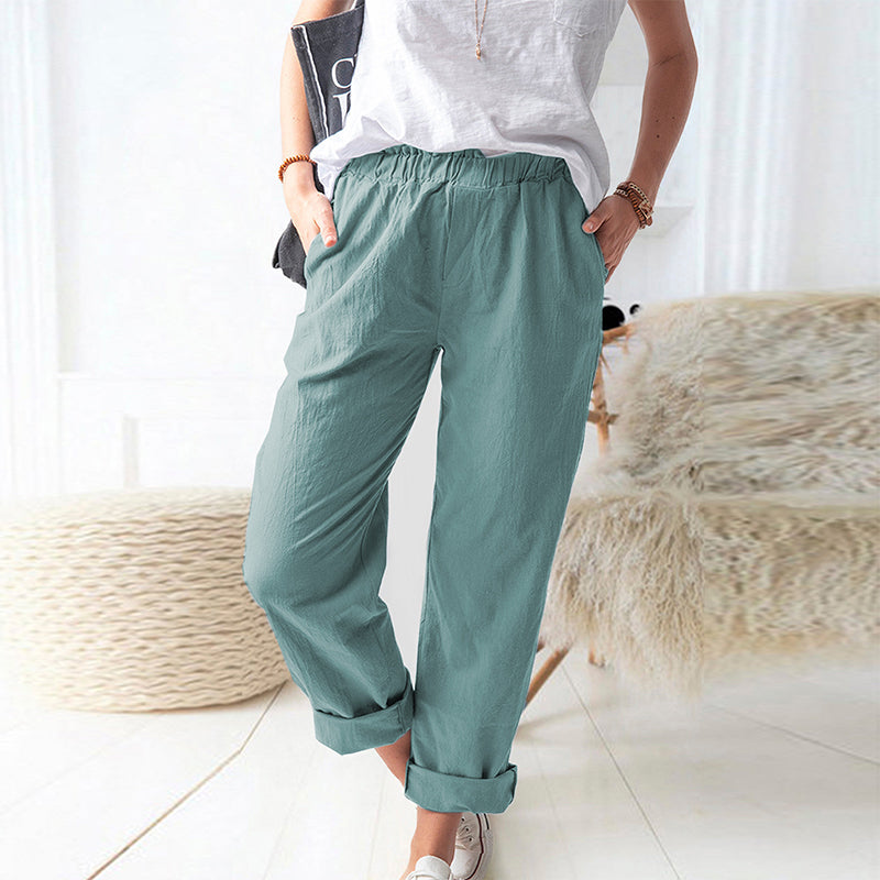 • Fashion comfy solid high waist long pants, beach button down pants.
