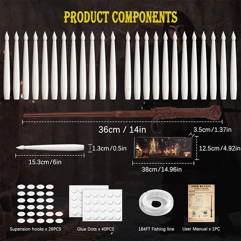 Immerse yourself in the world of wonder as these candles levitate magically above your head. Witness the supernatural come to life as their flickering glow creates an eerie yet captivating atmosphere, perfect for setting the scene for spooky season.