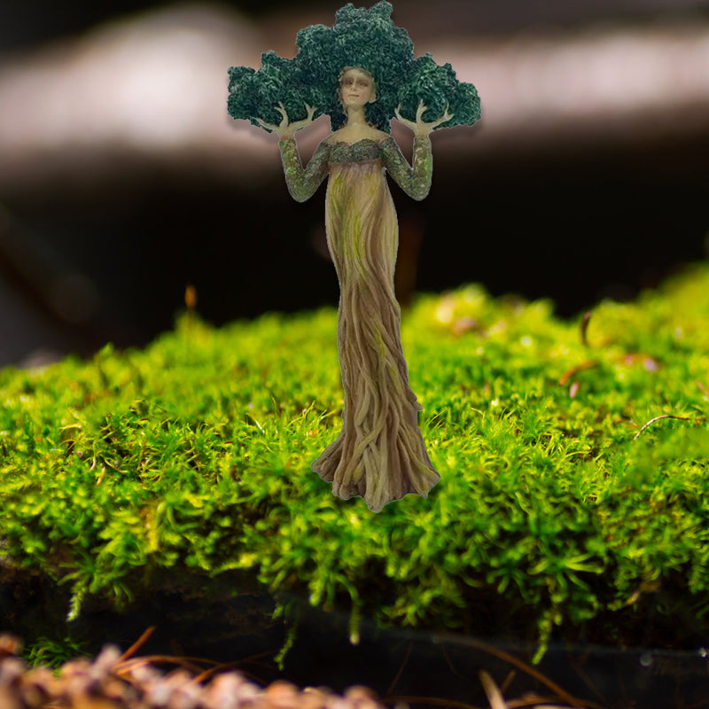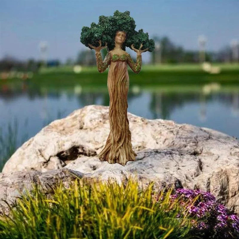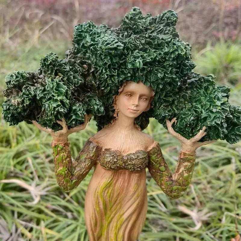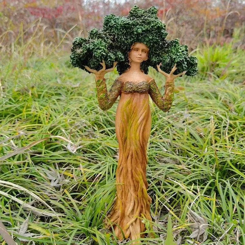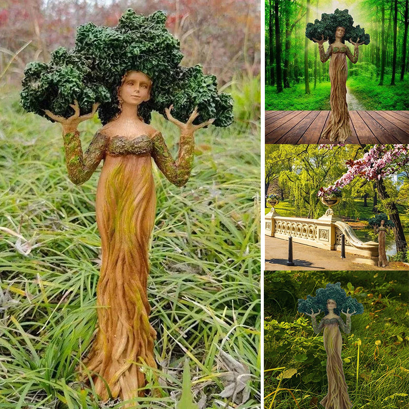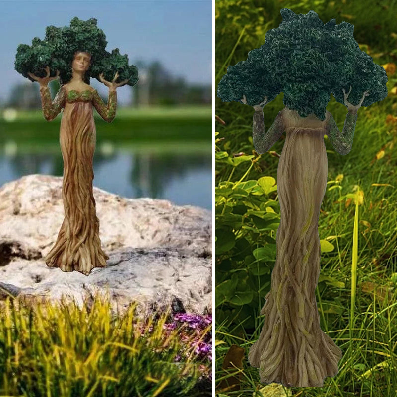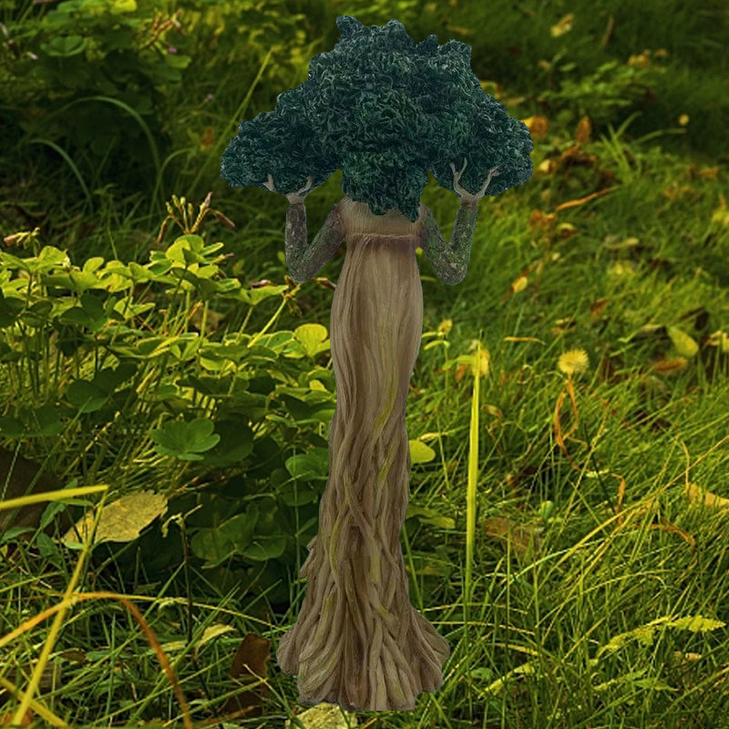 • 🌳 It looks like a tree as a whole, wearing vine-like clothes, the branches extending from both arms are like hands, holding clusters of branches and leaves, these dense branches and leaves are like the hair of the forest goddess , here guards your garden.